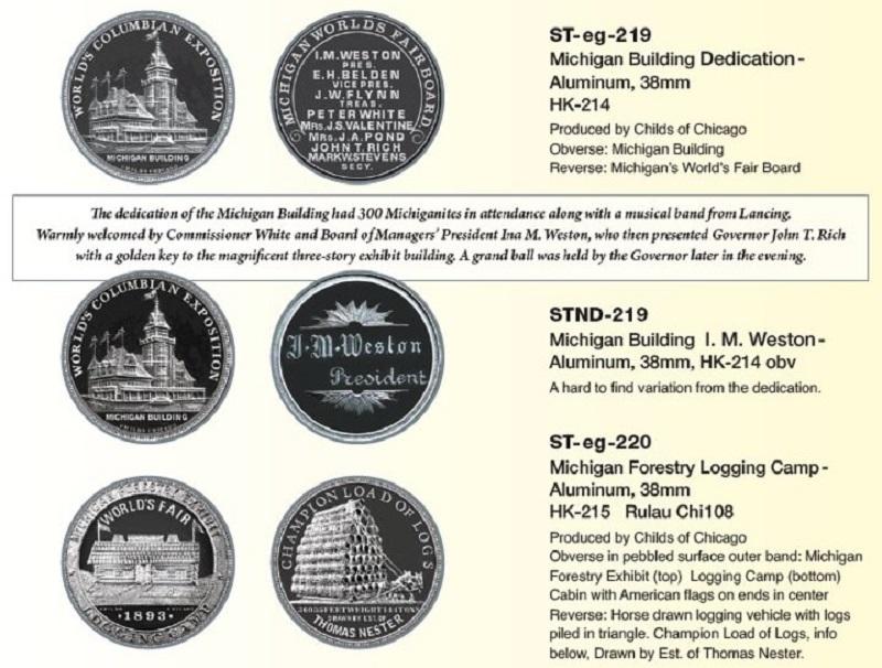 Three souvenir coind relating to Michigan at the 1893 World’s Fair are cataloged in Referencing Columbiana.