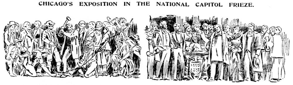 In 1896, the host city of the 1893 World’s Fair held out hope that the momentous event would appear (along with the “last spike” scene) in the U.S. Capitol frieze. [Image from the Chicago Tribune June 3, 1896.]