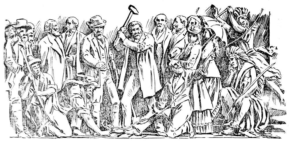 Filippo Costaggini’s cartoon depicting his proposed panel on “The Last Spike.” [Image from the Washington (DC) Evening Star May 30, 1896.]