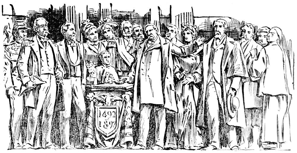 A contemporary illustration of the platform party at the Opening Ceremonies of the Columbian Exposition on May 1, 1893.[Image from the Chicago Tribune, May 2, 1893.]