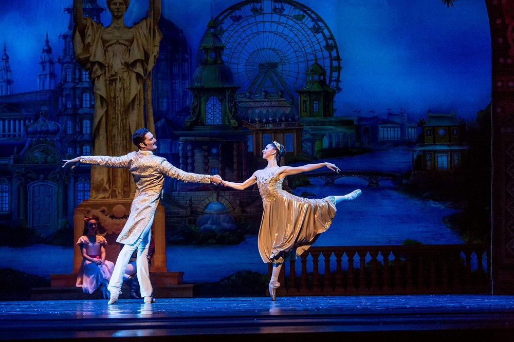 The Joffrey Ballet’s Nutcracker is set in Chicago in December 1892 and in the Dream City of the 1893 World’s Fair, where the Great Impresario and the Queen of the Fair perform a pas de deux. [Image from the Joffrey Ballet https://joffrey.org/.]