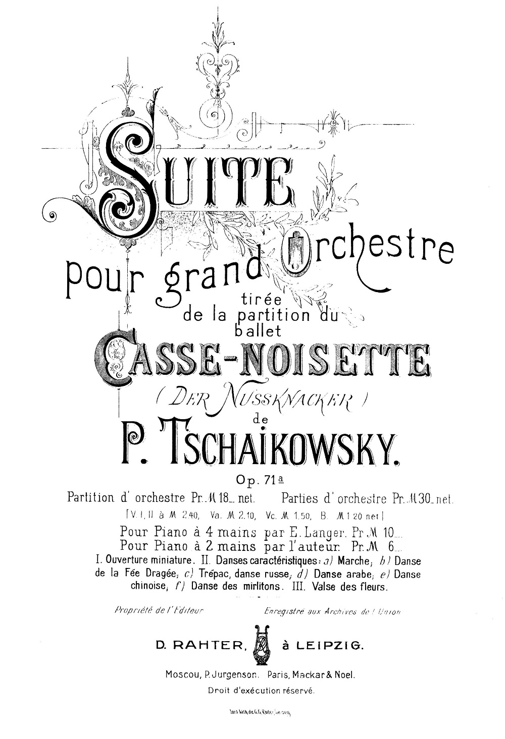 Having promised the Russian Musical Society a new work for their concert scheduled for March 1892, the composer decided to compile a selection of eight numbers from the ballet-in-progress. This Nutcracker Suite, Op. 71a, intended as an orchestral concert piece separate from the full ballet score, ultimately is the version heard by most audiences. While the Nutcracker Suite was mentioned by the Russian press as early as November 15, 1891, the first notice about the new composition in American newspapers seems to have been in early 1892. A syndicated news story reported that, in a “moment of feverish excitement” prior to hospitalization for a nervous condition, Tchaikovsky had thrown into a fire the overture and fragments of music to a ballet titled Casse Noisette (along with his score for the opera The Voyevoda) but that the work “was saved by the timely intervention of a friend.” [“Musical World”] The rescue of this manuscript changed the course of music history, as this piece would become one of Tchaikovsky’s most beloved works and the most often performed ballet in the world. In January and February of 1892, Tchaikovsky completed his orchestrations and then conducted the premiere of the Nutcracker Suite on March 19 for the Saint Petersburg branch of the Russian Musical Society. The composition proved so popular that the esteemed audience asked for encores of each number in the concert. For a second performance, in Moscow on July 16, Vojtěch I. Hlaváč, professor of music at the Imperial University in Saint Petersburg, conducted. As a special guest at the 1893 World’s Fair in Chicago the following summer, Prof. Hlaváč would have another opportunity to conduct the suite.