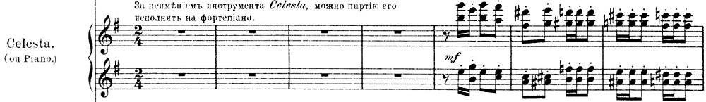 “In Tschaikowsky’s delightful Casse-Noisette suite, a novelty was introduced in the shape of a new instrument of French invention, known as the ‘celesta.’ It produces a delicate tone, something between that of a harp and a softly tapped bell.”