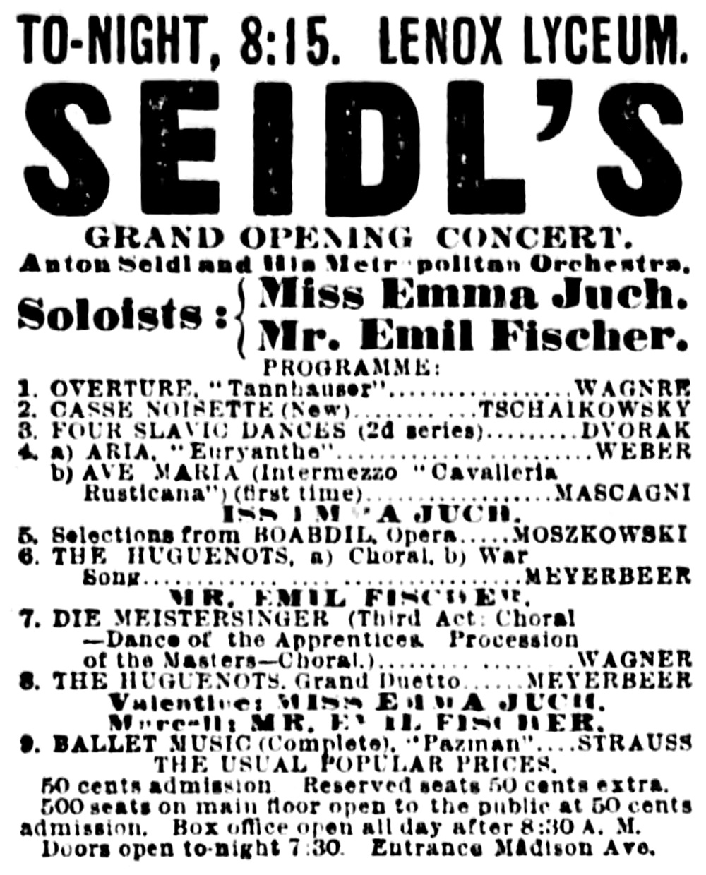 An advertisement for Anton Seidl’s Metropolitan Orchestra concert on November 6, 1892. The program included the “new” Casse-Noisette Suite. [Image from New York Herald Nov. 6, 1892.]