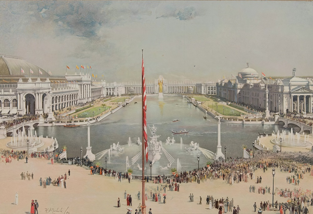 “The Court of Honor” by H. D. Nichols. [Image from Bancroft, Hubert Howe. The Book of the Fair: An Historical and Descriptive Presentation of the World’s Science, Art, and Industry, as Viewed Through the Columbian Exposition at Chicago in 1893. (Bancroft Co., 1893.)]